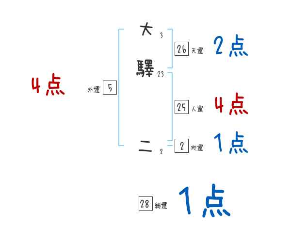 総運![]() | 大驛二さんの総運は28画の1つ星!家庭環境に注意。スポーツで活躍できる能力があるかも。 あなたの人生を表す1番重要な運勢です。生涯を通じて影響する総合運となり、主に50歳以降の晩年期に影響を及ぼします。 |