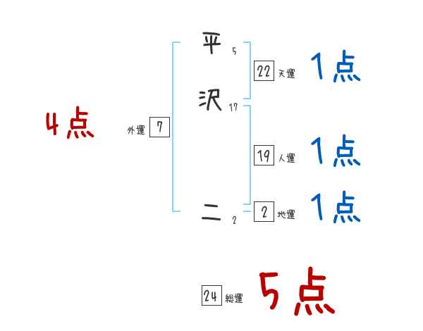 平沢二さんの画数の鑑定結果