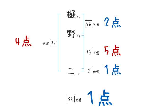 樋野二さんの画数の鑑定結果