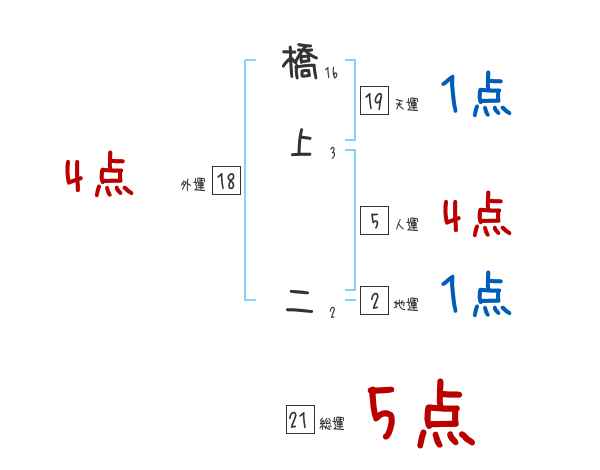 橋上二さんの画数の鑑定結果