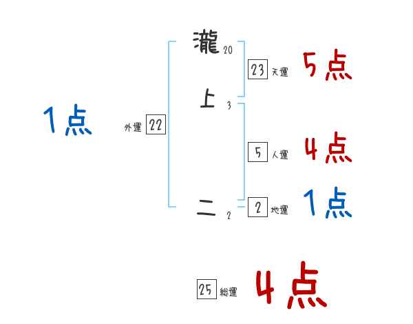 瀧上二さんの画数の鑑定結果
