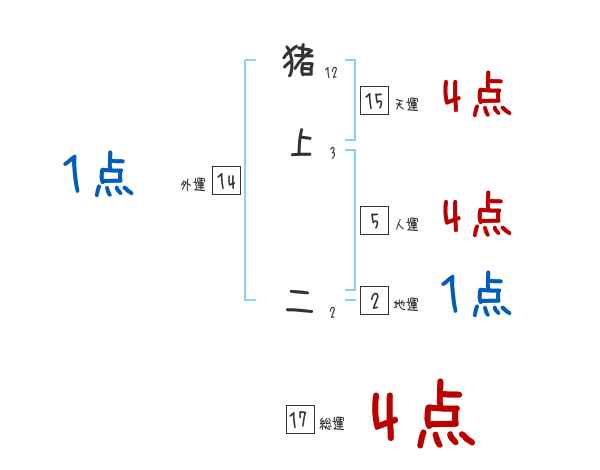猪上二さんの画数の鑑定結果