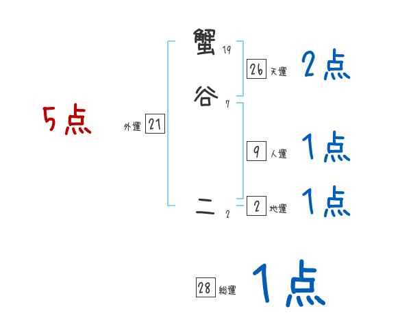 蟹谷二さんの画数の鑑定結果