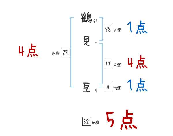 鶴見互さんの画数の鑑定結果