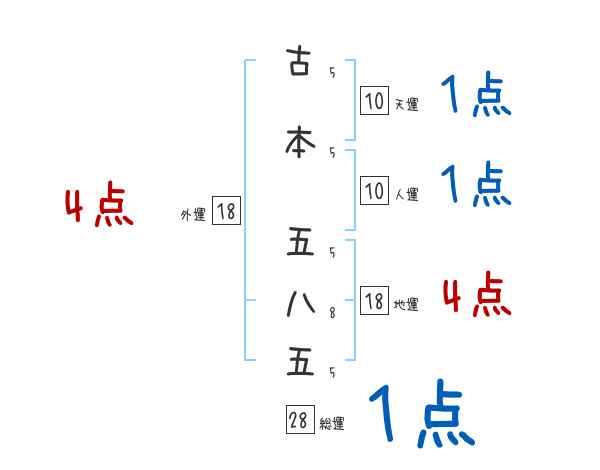 古本五八五さんの画数の鑑定結果