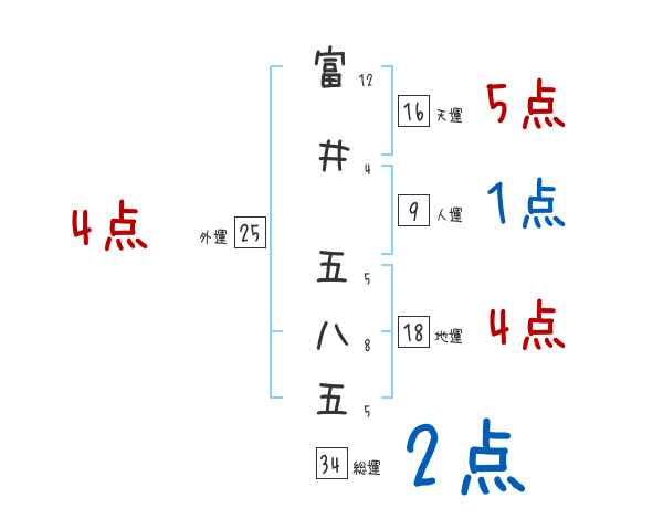 富井五八五さんの画数の鑑定結果
