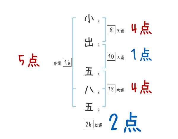 小出五八五さんの画数の鑑定結果