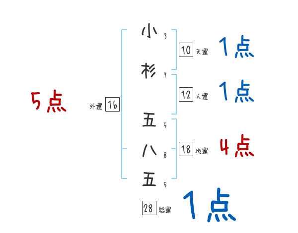 総運![]() | 小杉五八五さんの総運は28画の1つ星!家庭環境に注意。スポーツで活躍できる能力があるかも。 あなたの人生を表す1番重要な運勢です。生涯を通じて影響する総合運となり、主に50歳以降の晩年期に影響を及ぼします。 |