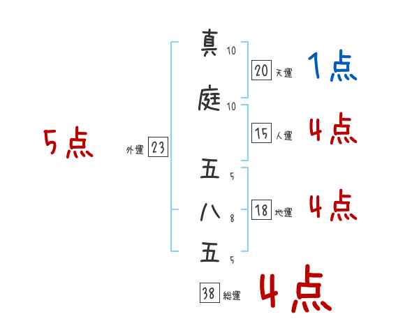 真庭五八五さんの画数の鑑定結果