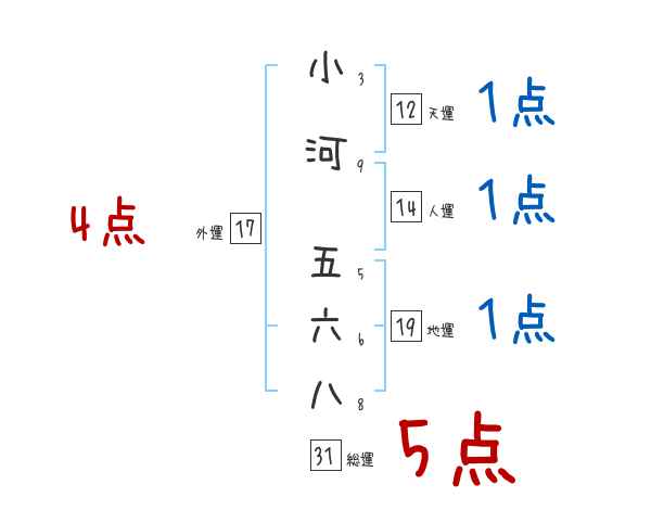 小河五六八さんの画数の鑑定結果