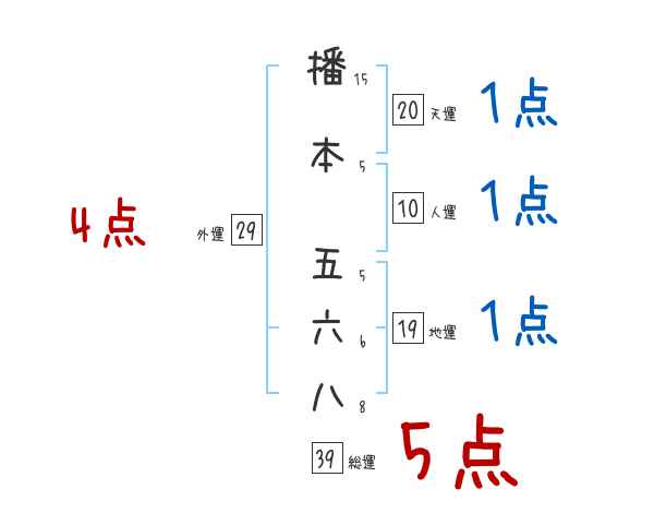 総運![]() | 播本五六八さんの総運は39画の5つ星!社交性に優れ人望が厚い。人の上に立ち成功する。 あなたの人生を表す1番重要な運勢です。生涯を通じて影響する総合運となり、主に50歳以降の晩年期に影響を及ぼします。 |