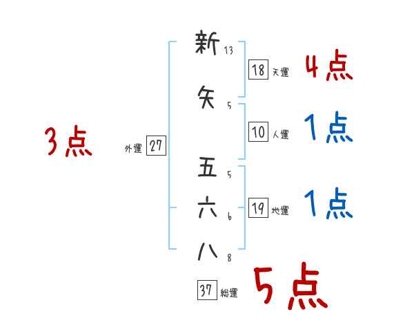 天運![]() | 新矢五六八さんの天運は18画の4つ星!情熱的で剛気。忍耐力があり信頼される。 家系が持つ宿命的な運勢を表します。祖先から受け継いだ苗字ですので自分の力が及びません。家柄を象徴します。 |
