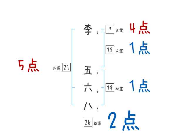 外運![]() | 李五六八さんの外運は21画の5つ星!統率力がある。独立し成功する。名誉を手に入れる。 生活面を象徴する運勢です。外部から受ける影響力を表し、結婚運、家庭運や職場、環境への順応性を表します。 |