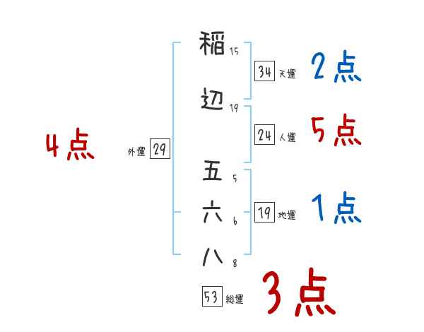 稲辺五六八さんの画数の鑑定結果