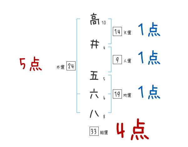 高井五六八さんの画数の鑑定結果