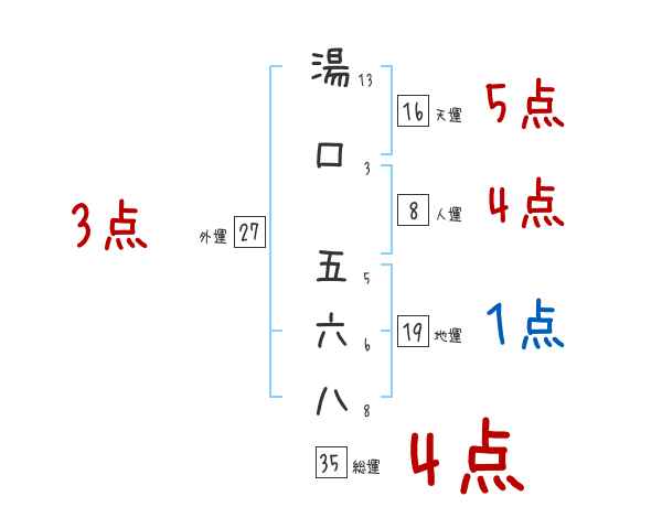 湯口五六八さんの画数の鑑定結果