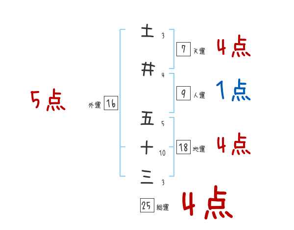土井五十三さんの画数の鑑定結果