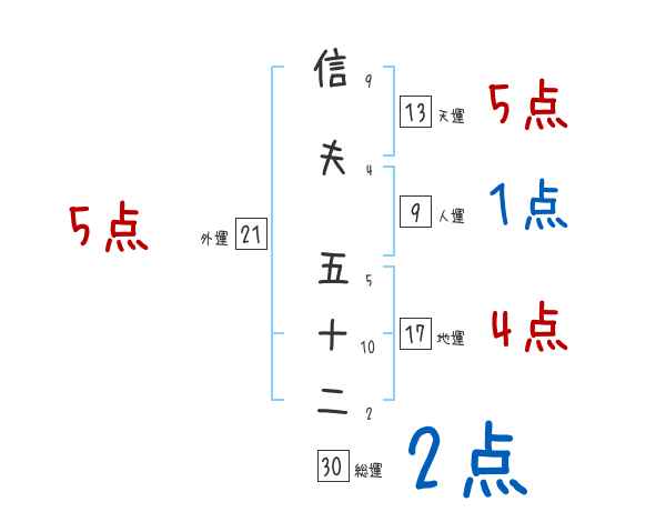 信夫五十二さんの画数の鑑定結果