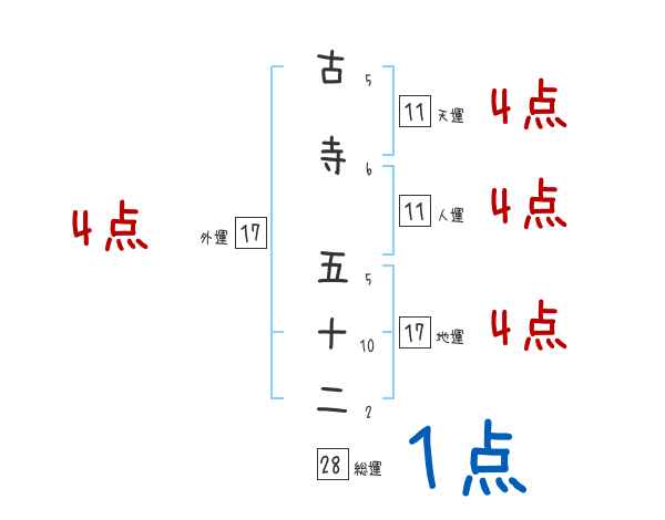 天運![]() | 古寺五十二さんの天運は11画の4つ星!着実に富や地位を得る幸運な人生。 家系が持つ宿命的な運勢を表します。祖先から受け継いだ苗字ですので自分の力が及びません。家柄を象徴します。 |