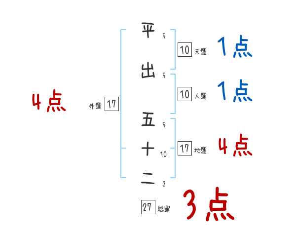 外運![]() | 平出五十二さんの外運は17画の4つ星!積極的な行動力。地位を気づき財産を手に入れる。純粋な心と直感力。 生活面を象徴する運勢です。外部から受ける影響力を表し、結婚運、家庭運や職場、環境への順応性を表します。 |