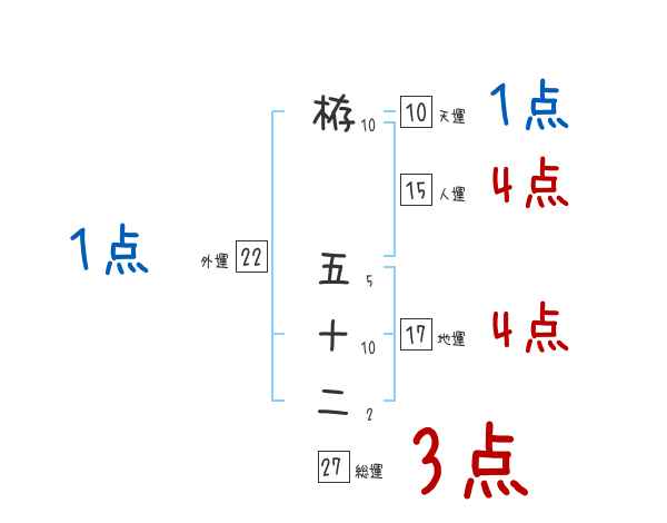 栫五十二さんの総運は27画の3つ星