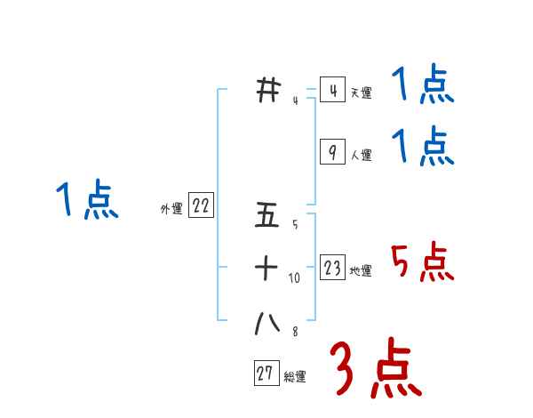 外運![]() | 井五十八さんの外運は22画の1つ星!努力することが苦手ないっぽう手先が器用。芸術性にも優れる。 生活面を象徴する運勢です。外部から受ける影響力を表し、結婚運、家庭運や職場、環境への順応性を表します。 |