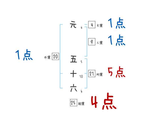 地運![]() | 元五十六さんの地運は21画の5つ星!統率力がある。独立し成功する。名誉を手に入れる。 個性を表す基礎的な運勢です。性格形成や対人関係、行動力など家庭環境に影響されます。主に誕生してから20歳くらいまでの若年期の運勢を表します。 |