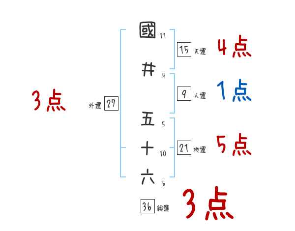 國井五十六さんの画数の鑑定結果