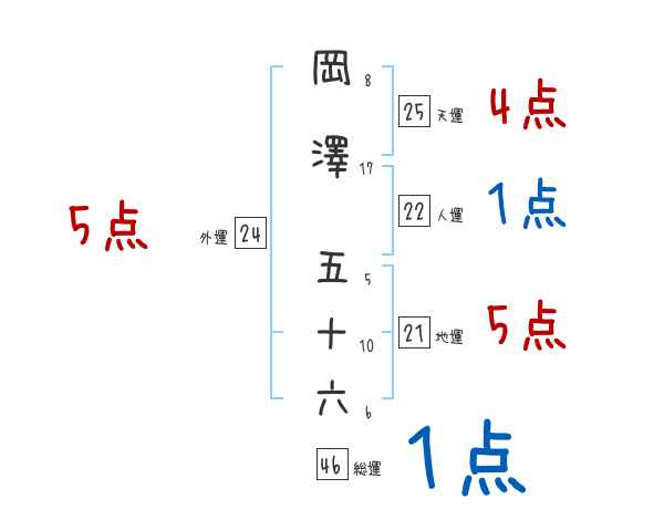岡澤五十六さんの画数の鑑定結果