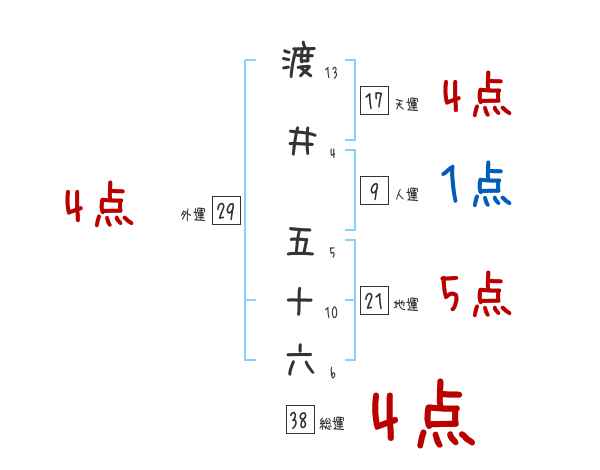 渡井五十六さんの画数の鑑定結果