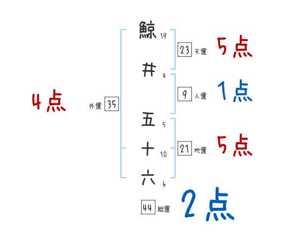 鯨井五十六さんの画数の鑑定結果