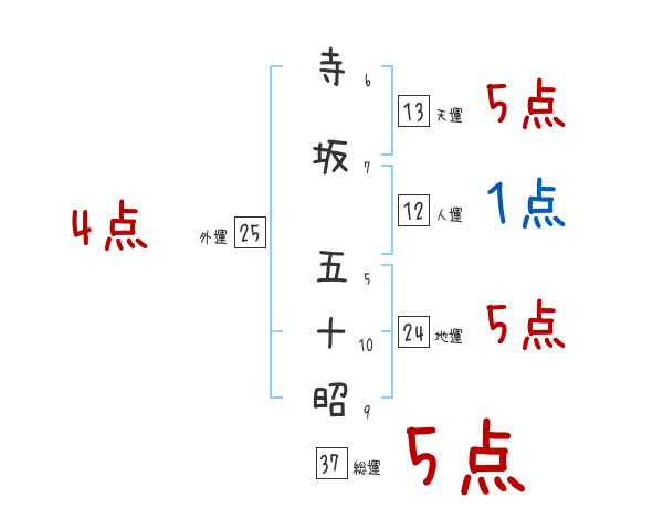 総運![]() | 寺坂五十昭さんの総運は37画の5つ星!努力家で順応性に優れる。現実的な考え方ができ忠実に物事をこなす。 あなたの人生を表す1番重要な運勢です。生涯を通じて影響する総合運となり、主に50歳以降の晩年期に影響を及ぼします。 |