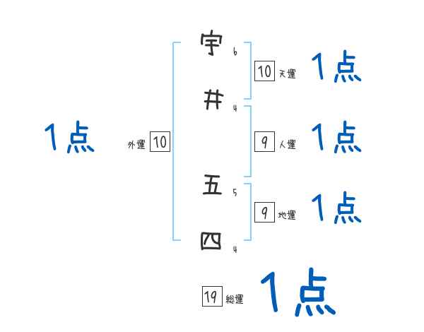 宇井五四さんの画数の鑑定結果