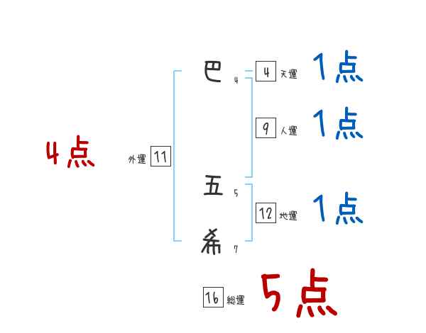 巴五希さんの画数の鑑定結果