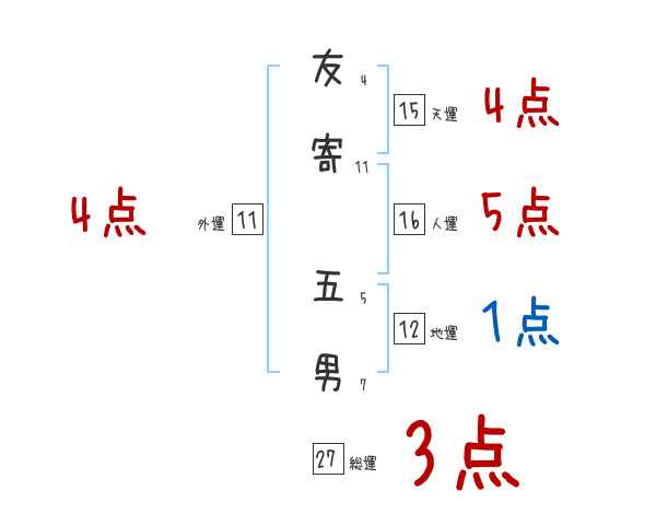 友寄五男さんの画数の鑑定結果