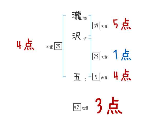 瀧沢五さんの画数の鑑定結果