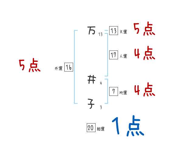 万井子さんの画数の鑑定結果