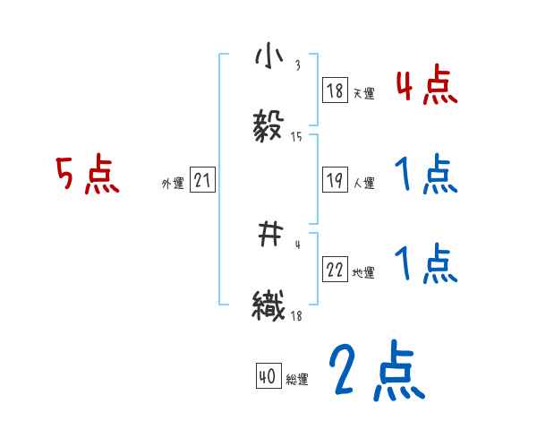 小毅井織さんの画数の鑑定結果