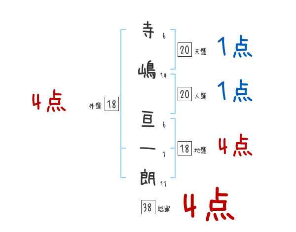 寺嶋亘一朗さんの画数の鑑定結果