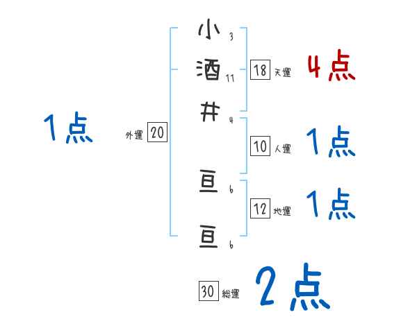 天運![]() | 小酒井亘亘さんの天運は18画の4つ星!情熱的で剛気。忍耐力があり信頼される。 家系が持つ宿命的な運勢を表します。祖先から受け継いだ苗字ですので自分の力が及びません。家柄を象徴します。 |