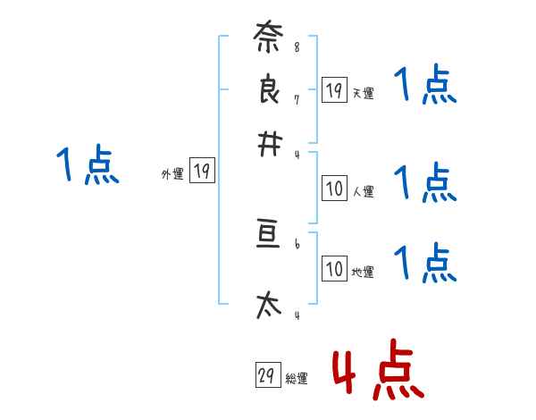 奈良井亘太さんの画数の鑑定結果