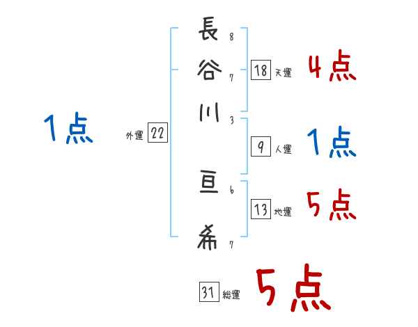 総運![]() | 長谷川亘希さんの総運は31画の5つ星!社交性があり判断力に優れる。順風満帆な人生で円満な生活。 あなたの人生を表す1番重要な運勢です。生涯を通じて影響する総合運となり、主に50歳以降の晩年期に影響を及ぼします。 |
