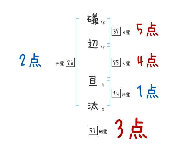 礒辺亘汰さんの画数の鑑定結果