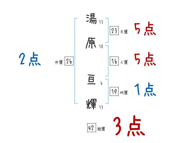 湯原亘輝さんの画数の鑑定結果