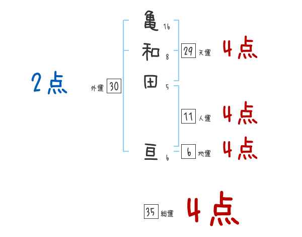 亀和田亘さんの画数の鑑定結果