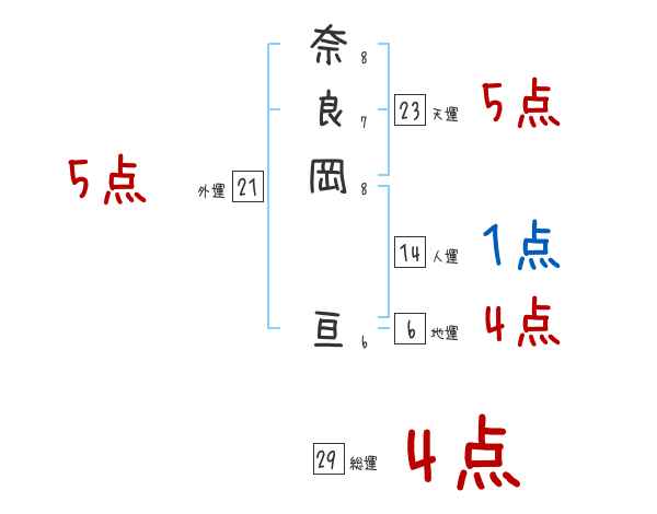 奈良岡亘さんの画数の鑑定結果