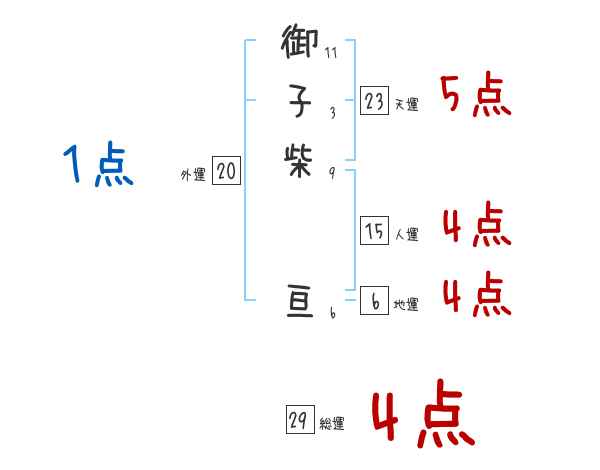 御子柴亘さんの画数の鑑定結果