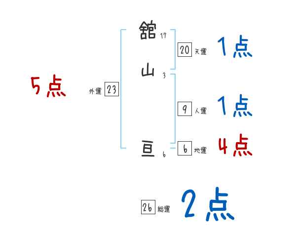 舘山亘さんの画数の鑑定結果