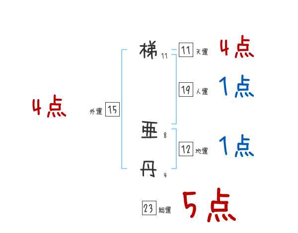 梯亜丹さんの画数の鑑定結果