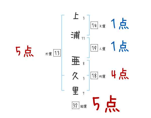 上浦亜久里さんの画数の鑑定結果